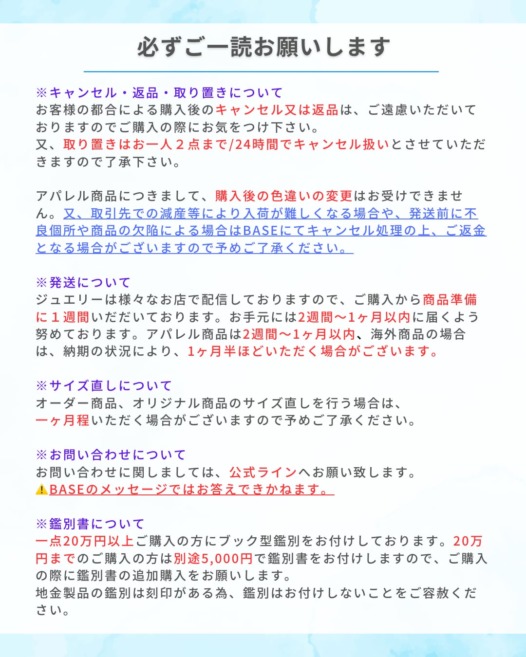 ※BASEのお問い合わせの返信は行っておりません